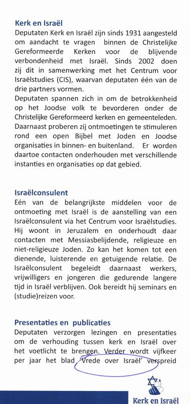waarom en hoe de Christelijke Gereformeerde Kerken werken in Israël